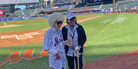 The Mets, aside from a sizeable charitable donation in her name to a number of organizations, gave her the thrill of a lifetime with her own locker at Citi field and the chance to throw out the first pitch. Pretty solid first pitch for someone approaching the century mark, and as a side bar, her baseball bat cane is awesome!