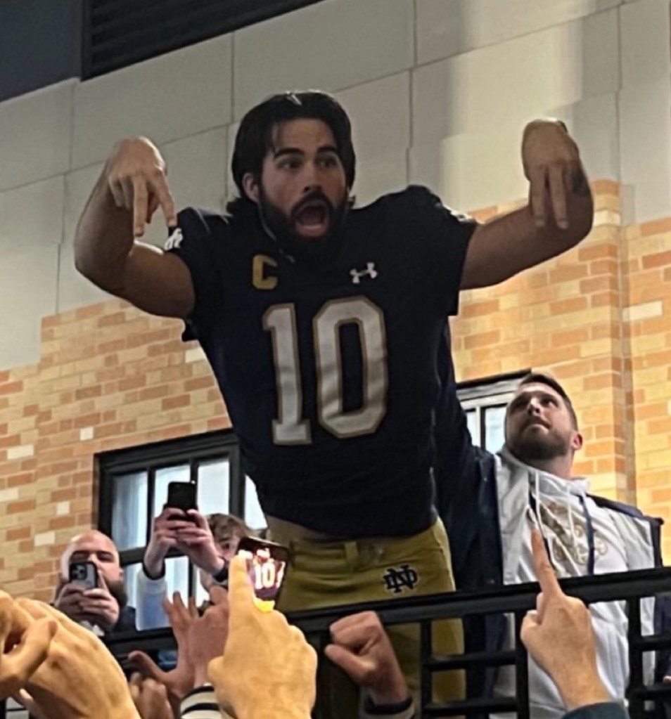 While the “Sam Heisman” meter is no longer working, Hartman continues to lead this team and program brilliantly. Lou Holtz once spoke of needing “Notre Dame men” and Hartman is exactly that. His respect for his opponents and reverence for tradition makes one wish he would be back next year. Lets enjoy these final four games with Number Ten, Irish Fans, he’ll always be one of us!