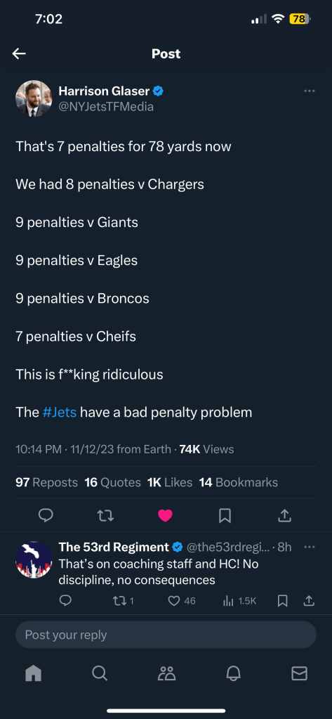 With things looking like they’re on the verge of spiraling out of control, the season will become about further evaluating everything. This coaching staff needs to prove they can do the job and the players on this team need to clean up their game. I would replace the whole coaching staff, no matter what, as their performance holds this team back. Sure Zach Wilson is a problem, but we need to stop pretending he is the “whole” problem. Next up are two games in division, at Buffalo and then home versus the Dolphins on “Black Friday.”