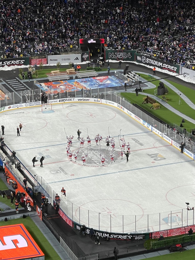 Let’s start with a quick word on the event itself. I am extremely critical of MetLife Stadium (with good reason) in this blogs companion piece about the Jets and Giants. And while the concessions were an absolute mess and leaving was difficult as usual, “the big AC unit” looked pretty good all dressed up on a Sunday night. The NHL stages the Winter Classic and the Stadium series quite well and tries to mimic the indoor hockey experience as best it can. Sure, the league feels a bit clownish at times, but they put a strong entertainment product together at these events and deserve immense credit for it. I often wondered what the sightlines at these outdoor events were like, and in my opinion, they were honestly pretty good. It was difficult to track some pucks in corners, but on the whole, it wasn’t too difficult to follow the action.