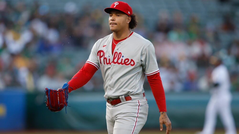 2. Rotation Depth Improves: For the last several years the Phillies rotation has been anchored by Zack Wheeler and Aaron Nola. While their tandem of big game pitchers does its job time and time again, the Phillies need the back end of the rotation to give them quality innings. Taijuan Walker, Ranger Suarez and Michael Lorenzen (shown above) need to be consistent for this team. If they don’t the Phillies will be in the market for a starter at some point this season.