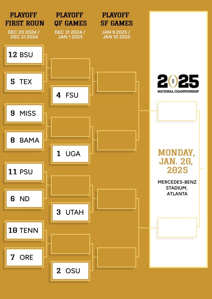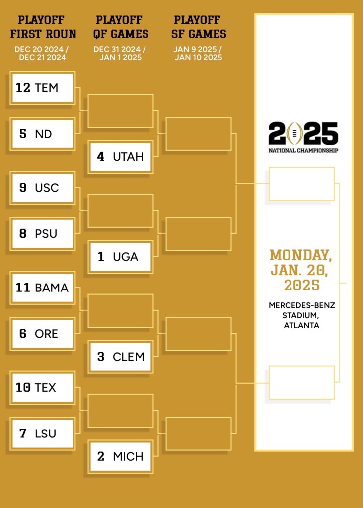 As its finally week 1, I wanted to put together a story on the playoff. By now you know the ins and outs of the 12-team field, and its rules, but I thought it would be fun to actually find out who everyone thinks will make the playoff. This is the new bracketology and a search for a perfect bracket shouldn’t be that hard…right? Maybe it’s housed in this article right here. Thanks to our respondents in the audience who sent us their picks, enjoy and share your comments on them below.