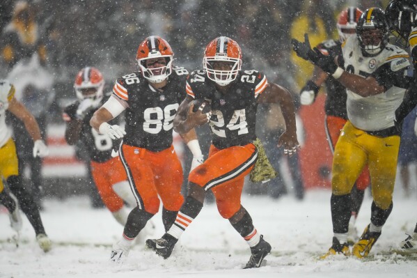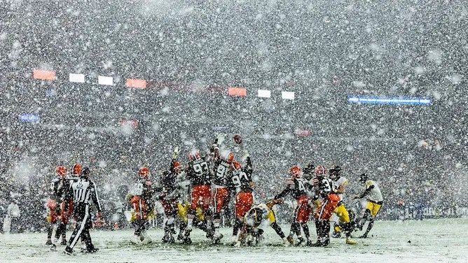 Playing in a Winter Wonderland: How could I not include the snow globe game we witnessed last Thursday night in Cleveland Ohio!? The Steelers and Browns met on the banks of Lake Erie, on decidedly opposite ends of the playoff spectrum with Pittsburgh in first place in the AFC North while the Browns occupy the basement. The game felt like a footnote to the week before it started but then the two old rivals played a snowy classic, one that saw the Brownies upset the black and yellow 24-19 in front of the “dog pound.” I’ll let the images above do most of the talking, the only thing that’s missing from them is John Facenda and the NFL Films Theme music!
