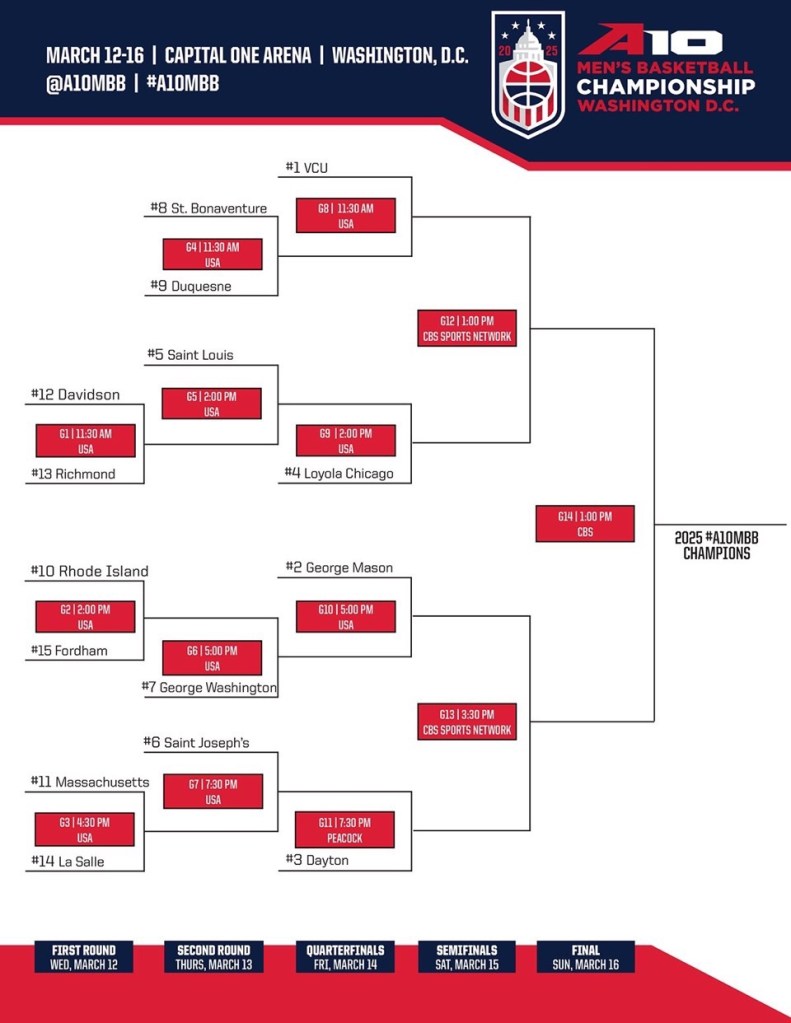 Don’t think this blog is going to end without a hat tip to the mid majors. Specifically the A-10.