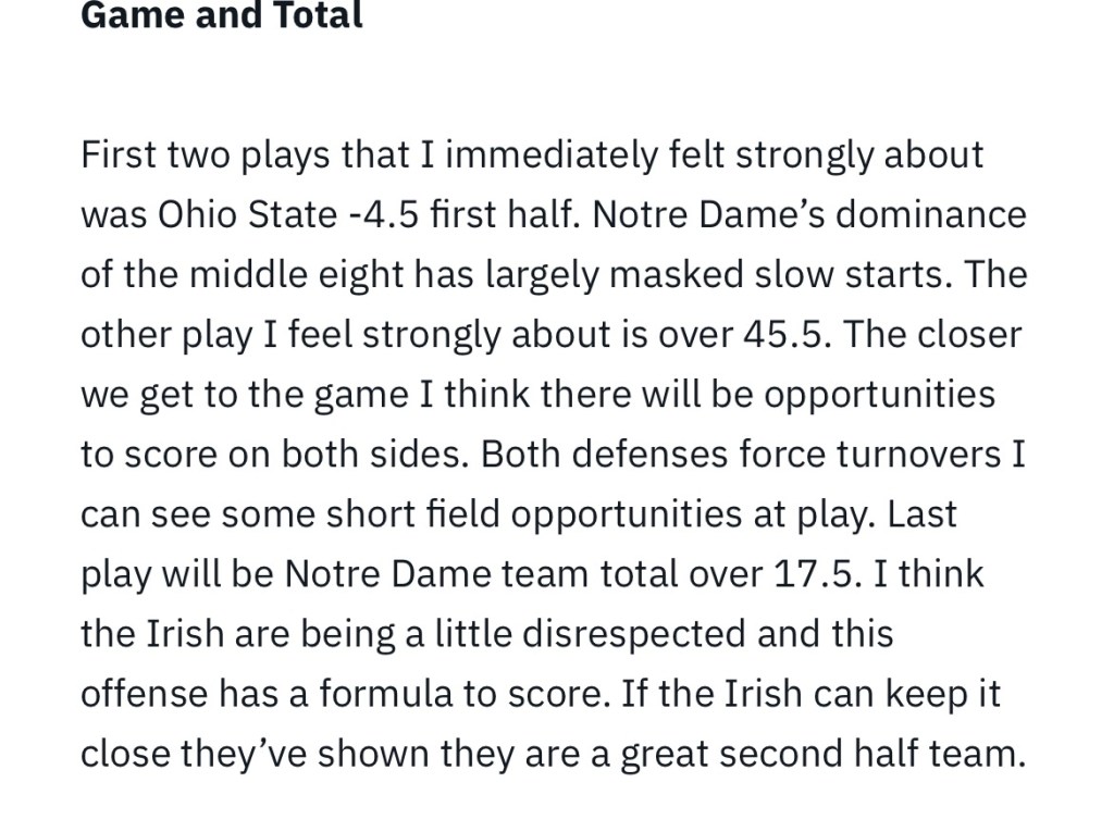 The last time I wrote to you I handicapped the Notre Dame Ohio State national championship game pretty damn well.