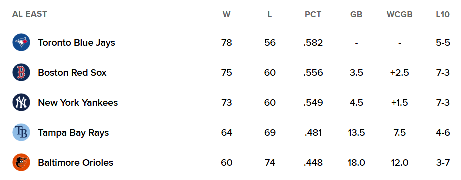 It’s Thursday and the Yankees are headed to the Southside of Chicago to take on the White Sox. They do so off the back of a three game sweep of the Nationals in the Bronx, pushing their winning streak to four straight. They sit 4.5 games behind the first place Blue Jays and occupy the second wild card place in the AL at 73-60. They have a handful of head to heads left with the teams they’re trying to catch, while also have a host of soft opponents to rack up wins against before seasons end. All of this sounds very good…doesn’t it? It should fill you with excitement as a fan.