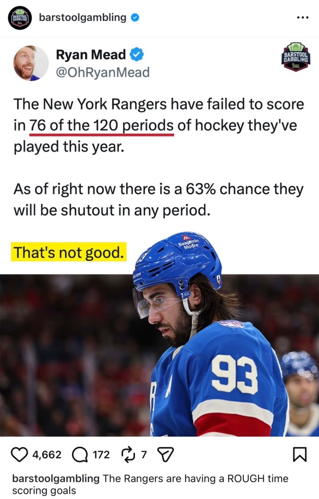 Then there are the Rangers, who frankly deserve this away more because they have managed to carry their awfulness through the end of the year and into 2026. Last year’s squad quit on the coach, the GM, the fans and each other, and much like the Mets this led to a major overhaul in the summer. Unfortunately they didn’t do nearly enough to improve as 25-26 version of the team is even worse to watch. Their low’s are staggering and they have quite frankly become the most unlikeable team in town.