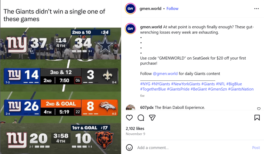 Winner – Giants Defense: There is no unit of players who should be more ashamed of themselves in this town than the 2025 Giants defense. This defense came into the season with the expectation that it could actually win the team some games as the front office made some investments in it with Abdul Carter and key free agents joining the mix. But big blues stop troops did anything but win them games, as they wound costing them several contests instead. Blown leads became their trademark, and their attitude was even worse as they fought the media, ignored their coaches and literally slept through meetings. They can blame everyone outside locker room, but at the end of the day it falls on the players and this performance was utterly shameful.